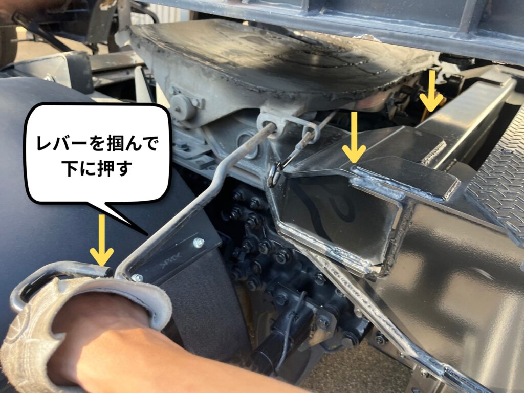 アウトリガーに関しては運転席からは見えないので、僕の場合、ヘッドのカプラーがシャーシから外れたところでヘッドのエアサスをある程度下げて発進するようにしています。
